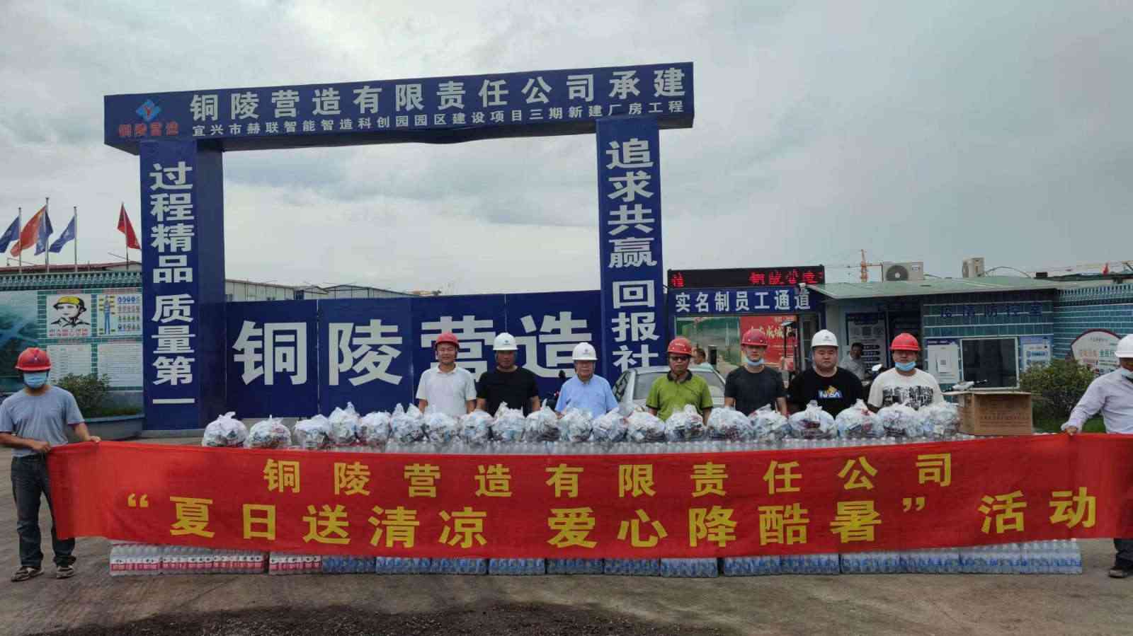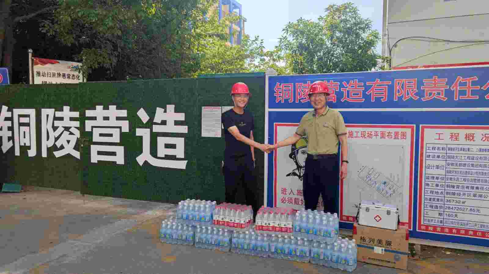 進入7月,隨著氣溫的升高,公司高溫慰問工作也迅速開展起來。公司董事長章為民同志、黨委書記王文俊同志、總經(jīng)理王慧敏同志帶隊,帶領(lǐng)機關(guān)相關(guān)部室負責人冒著酷暑,分批前往包括見龍花園、龍山湖苑等12個市內(nèi)在建工程項目部以及宜興赫聯(lián)等2個市外在建工程項目部,慰問高溫天氣仍奮戰(zhàn)在建設(shè)一線的項目施工人員。此次慰問給現(xiàn)場施工人員送去了礦泉水、飲料、人丹、十滴水等防暑降溫物品,發(fā)到他們的手中,為他們送去一份清涼。