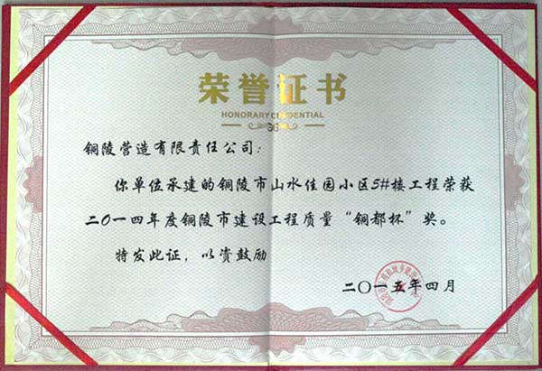 上一篇:銅陵市山水佳園小區(qū)5#評為“優(yōu)良工程”