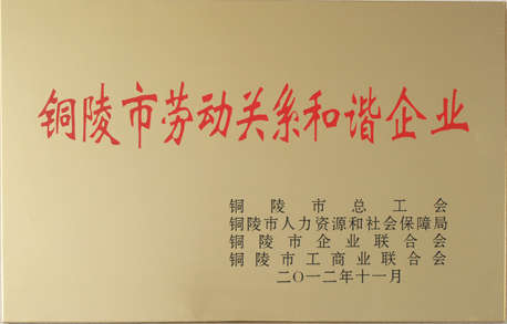 2012年榮獲銅陵市勞動(dòng)關(guān)系和諧企業(yè)